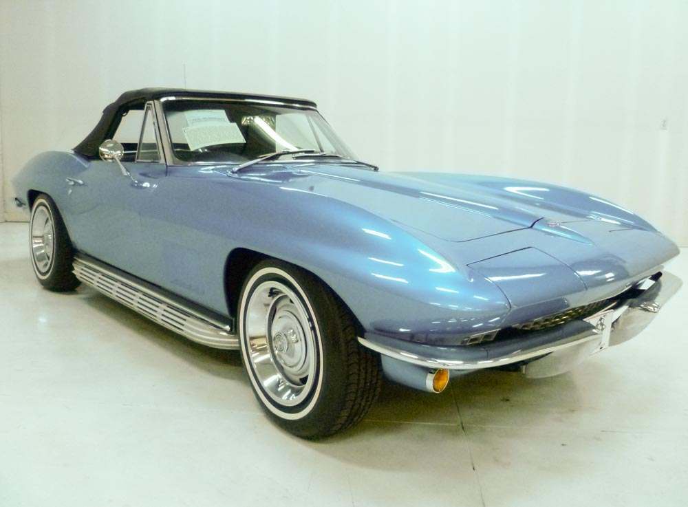 1025U..1967 Corvette Convertible with Two Tops, 427-400 hp, 4 speed, numbers matching original motor and transmission, also has factory original body/trim tag with CCAS/Grenning Trim Tag Affirmation, 2 or 3 owner car with 62,943 actual miles. Silver Pearl paint with Teal Blue stinger, Teal Blue interior and Teal Blue soft top. Body-off restored in show condition. Also has an affirmation by CCAS/Grenning as to the legitimacy and originality of the engine block, stamp pad, and the engine stamp. These type restorations normally cost between $125,000.00 to $150,000.00. This restored Corvette has yet to be shown, creating an exciting opportunity for the next owner to exhibit the car and compete for trophies, awards, and recognition! Optioned with power windows, leather, headrest seats, auxiliary hardtop, M-21, 3.36 posi, SS brakes, AM/FM radio, tri-power, tinted glass, B.O. aluminum wheels and vintage 7.75x15" red stripe tires. Most all factory correct type components including the spare, jack, clear floor mats, seat belts, washer system, shifter, shielding, braided wires, air cleaner, alternator, hoses, hose clamps, starter, gas door assembly, glove box door, warranty book, owners manual, sales brochure, and T-3 headlights. Documented with warranty book/P.O.P., CCAS/Grenning Engine Stamp Affirmation. CCAS/Grenning Trim Tag Affirmation, owners manual packet, owner history, previous owner's title, numbers sheet and 3-ring binder. Only 2,101 427-400 hp were produced in 1967. From the past owner of 19 years. Production date of September 21, 1966 and delivered new by Huebsch Chevrolet in Prairie Du Chien, WI (dealer code 292 in zone 61) per the official NCRS/GM Shipping Data Records (SDR). Looks, runs, and drives excellent. CC:1 $169,000.00